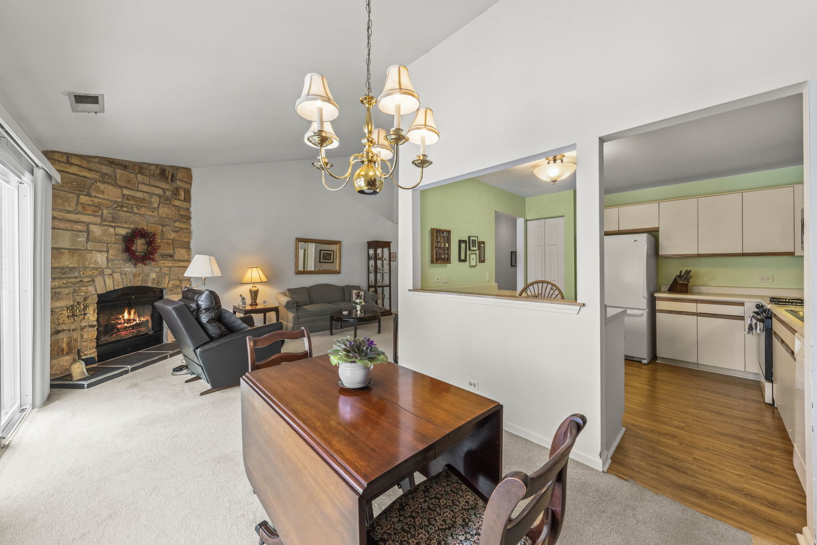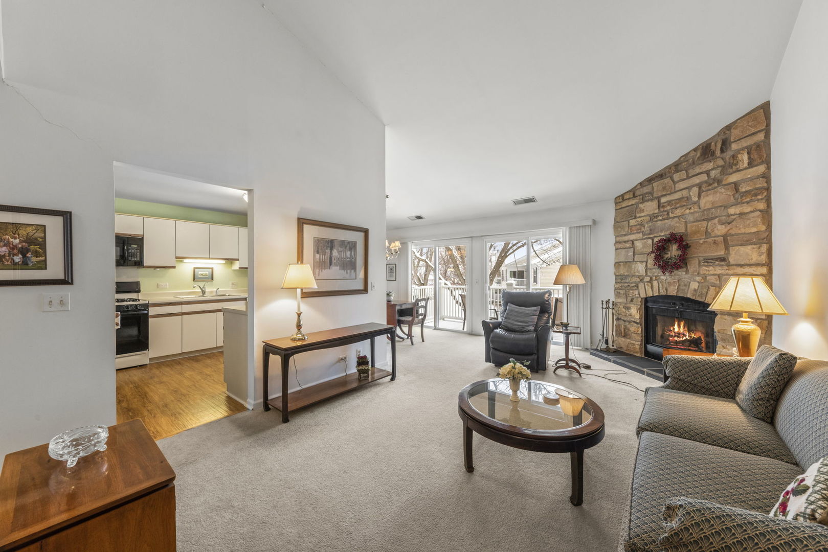 Welcome to 184 Country Club Dr #B, your new home in the coveted Rob Roy Country Club Village! This spacious two bedroom, two bathroom condo offers an exciting opportunity to customize and make it your own. As you enter, you're greeted by a dramatic cathedral ceiling in the expansive living and dining area, accentuated by a charming stone fireplace, creating a cozy ambiance perfect for relaxation or entertaining. Double glass sliding doors lead out to a private balcony, offering a tranquil outdoor space to unwind and enjoy the views. The condo features convenient in-unit laundry and a generously sized kitchen, providing ample room for culinary endeavors. The primary bedroom boasts a large ensuite bathroom and a spacious walk-in closet, ensuring comfort and convenience. With a one car attached garage, parking is a breeze, adding to the convenience of this wonderful home. But the perks don't end there! Residents of Rob Roy Country Club Village also have access to an array of amenities including two outdoor swimming pools, tennis and pickleball courts, a clubhouse, and paved walking paths. Whether you prefer a refreshing dip in the pool, a friendly game of tennis, or a leisurely stroll in the serene surroundings, there's something for everyone to enjoy. Don't miss out on this fantastic opportunity to own a piece of the coveted Rob Roy lifestyle!